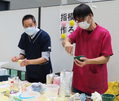 青森県歯科技工士会弘前地区の皆様よる指の型の模型作り。